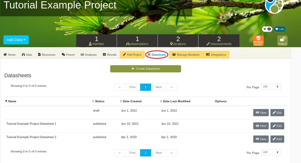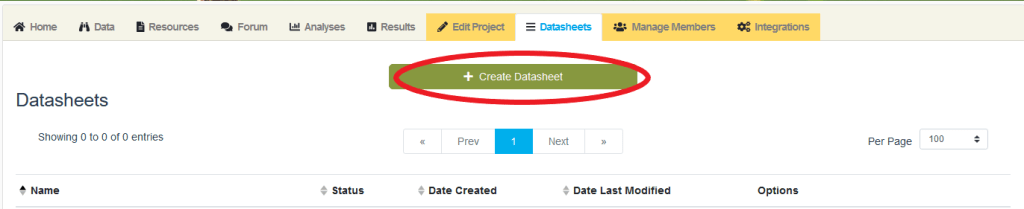 Once you arrive at your project homepage, locate the yellow “Datasheet” tab.