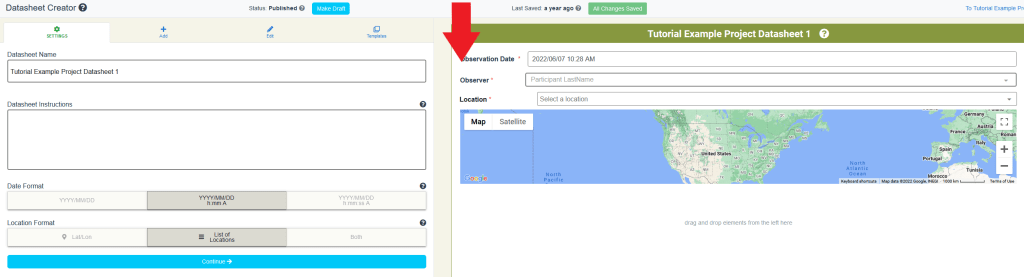 You will now be oriented back to your Project Profile. This step ensures that your participants can view your new location and updated Datasheet.