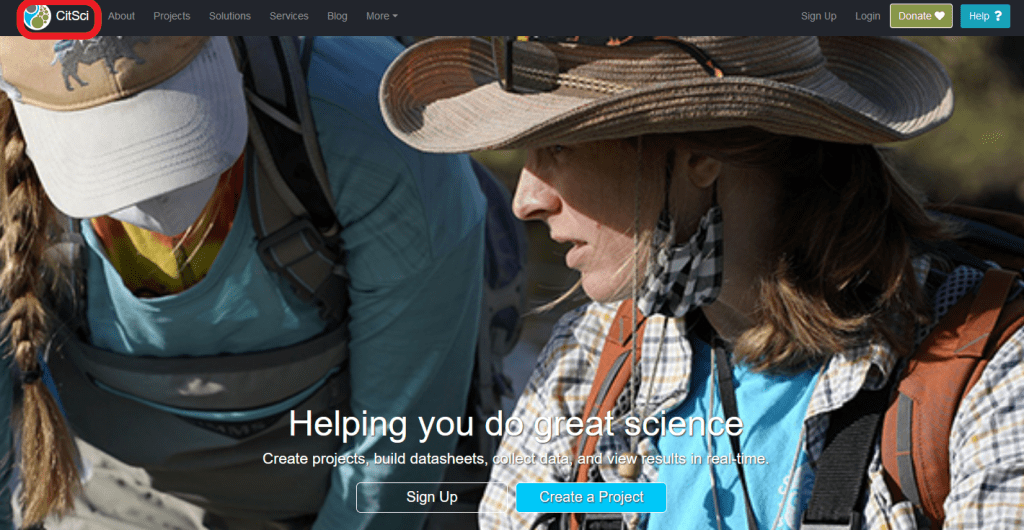 The Home Page gives a general overview of how CitSci.org works and what resources we provide. To move to the Home Page in our website, click on the “CitSci” icon located in the top left corner of the website.