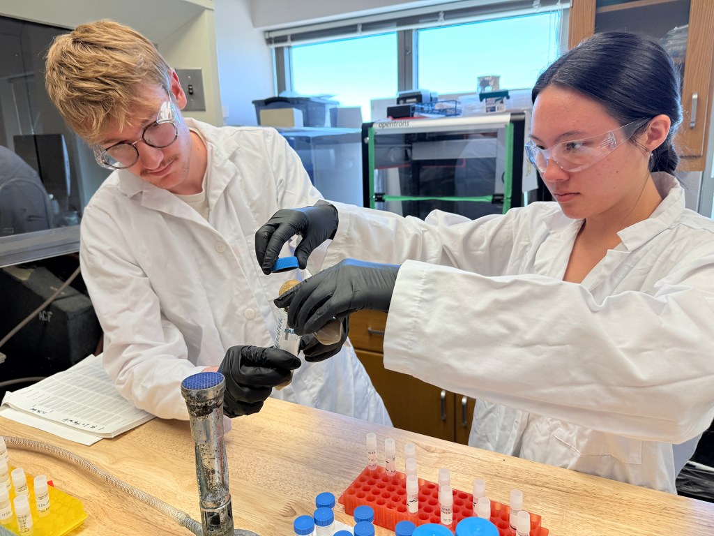 THE EXTREMOPHILES CAMPAIGN: After extensive media attention from NPR & others, over 1,300 observations were made of microbes – living everywhere from household dishwasher slime to hot springs – that could help fight climate change. CSU students Jacob Hall and Emma Lopez. Courtesy of SeedLabs