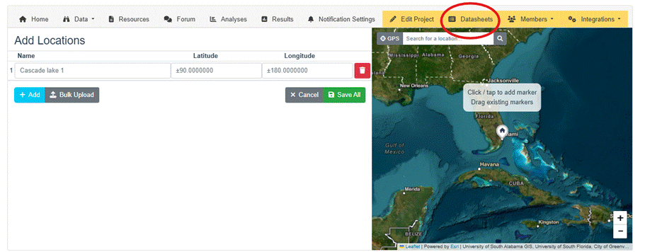 Before you even worry about locations, make sure you set up your first project and datasheet! Learn more, here.
