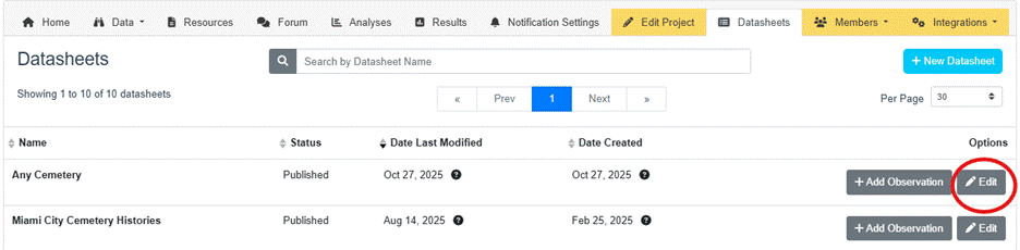 An individual project can support multiple datasheets, and you can customize locations differently for each datasheet.