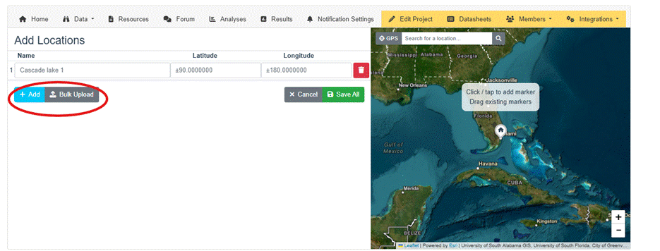 On the Add Locations page you can either add individual locations, or upload them in bulk. You need to know (or use the map tool to search for) the latitude, longitude, and name for each location. After adding the locations, they are ready for you to assign to: 1) all members using a specific datasheet (explained in the next section) or 2) to specific members (more on this later on!).